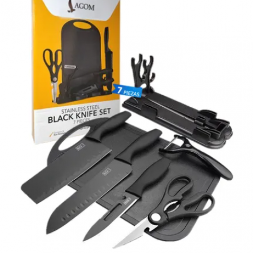 Equipa tu cocina con estilo y precisión con el Juego de Cuchillos Black Knife Set de 7 Piezas.